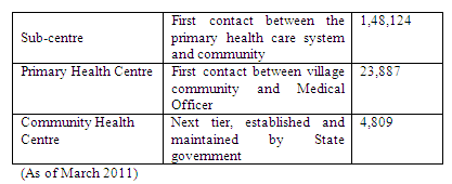 As mentioned earlier, the NRHM’s aim has been to improve the health care facilities provided for the rural population. The health care infrastructure has been developed as a three tier system to support the cause of NRHM